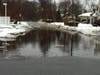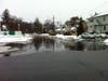 Access road swamped with rainwater and melting snow.