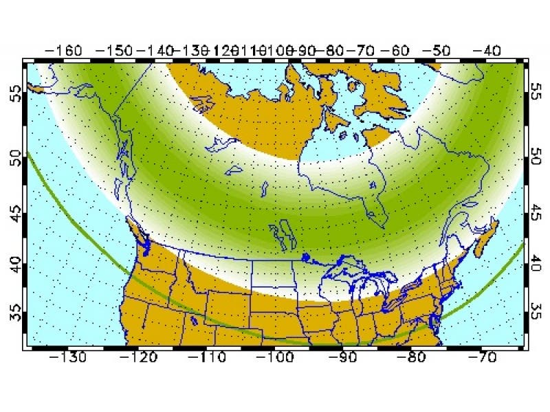 If you are above the green line, you should be able to see the aurora at night, weather permitting, the institute says.