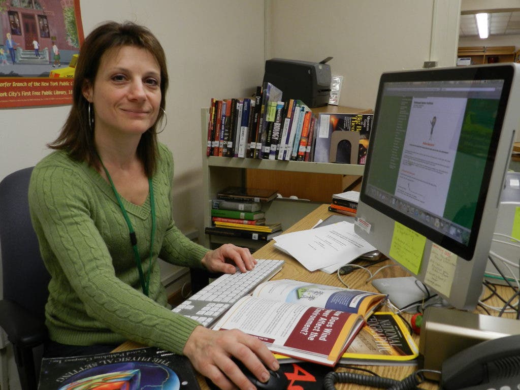 College level databases are aligned with college courses offered at the high school. With her desk strewn with various print materials on natural disasters, McCloskey works on expanding her repertoire of research materials to include more subjects in math and science. She is also working on another module for Earth Science teachers on the environmental concerns behind the concept of “fracking,” or hydraulic fracturing, the process to extract natural gas from the ground.