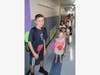 Several fifth-grade volunteers at Harbor met kindergartners as they got off the bus to take them to their classrooms for the first time. The new students had name tags with one of five symbols that corresponded to their classroom — an apple, a school bus, a star, a frog and a friendly bee.