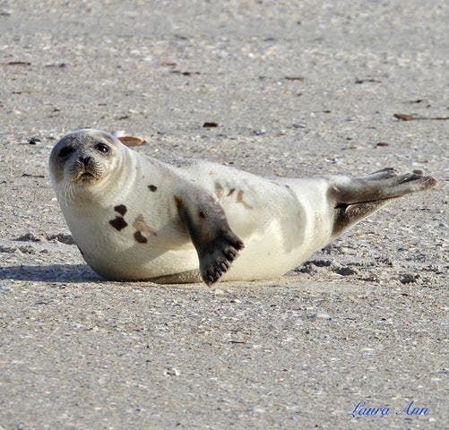 The seal, which is not an uncommon sight in the winter months, was sunning itself on the sand. Seals can also sometimes be found frolicking and feeding in the waters off Long Island.