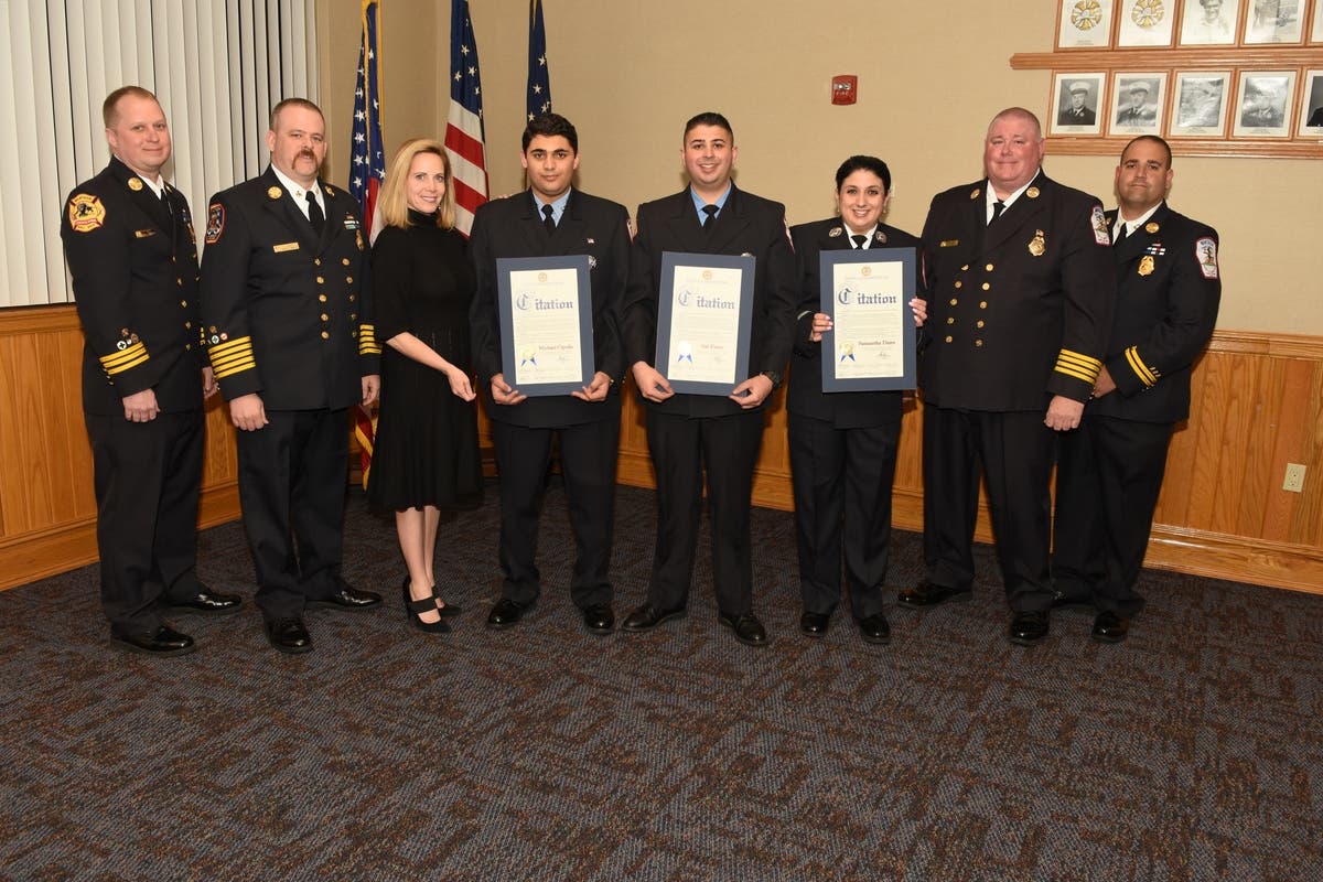 WANTAGH-SEAFORD, NY - From the Town of Hempstead: Hempstead Town Supervisor Laura Gillen (3rd left) recognizes and presents official Town of Hempstead Citations at the Wantagh Fire Department to the quick responding Wantagh Fire Department Crew who delivered a baby boy born in the North Wantagh area along the side of the Southern State Parkway near the westbound entrance for the Wantagh State Parkway last month. The crew responded to a young couple rushing to get to the hospital, but were caught in traffic. Crew included Lieutenant Samantha Datre, Firefighter Sal Ferro, Firefighter Michael Cipolla and (Not pictured, but recognized) Captain Stephen Lincke and Lieutenant Erica Goetz . Pictured (L-R) are Tom Bloomfield (2nd Assistant Chief), Joe Gross III (Chief of Department), Town of Hempstead Supervisor Gillen, Michael Cipollo (Paramedic), Sal Ferro (Firefighter/Paramedic), Samantha Datre (Lieutenant), Ken Kelly (1st Assistant Chief) and Len Mathewson (3rd Assistant Chief).