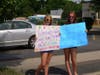 Varsity Dance Team lined up with buckets, towels and signs in front of this past Saturday, ready to wash cars for a team fundraiser.