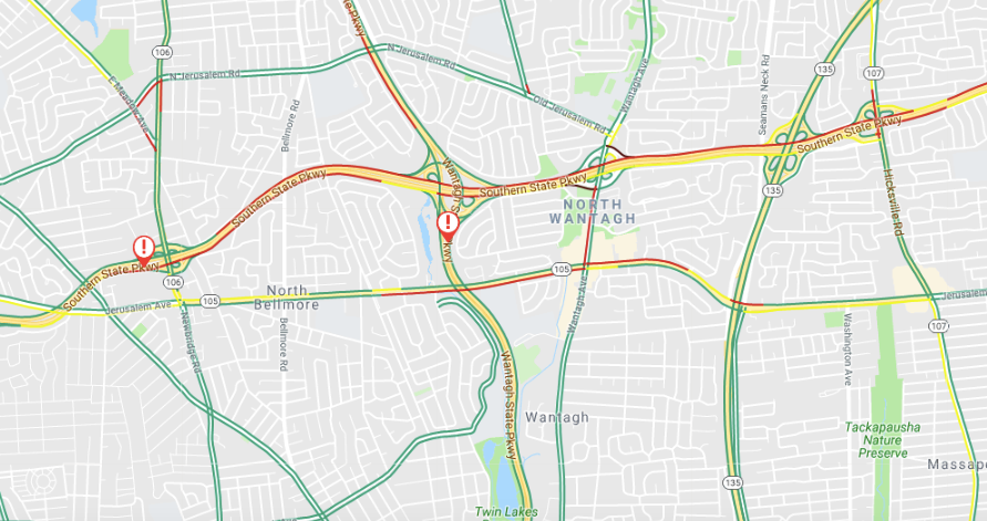 The crash happened around 4:40 p.m. Tuesday near Southern State Parkway in North Wantagh. Traffic cameras showed traffic snarled.