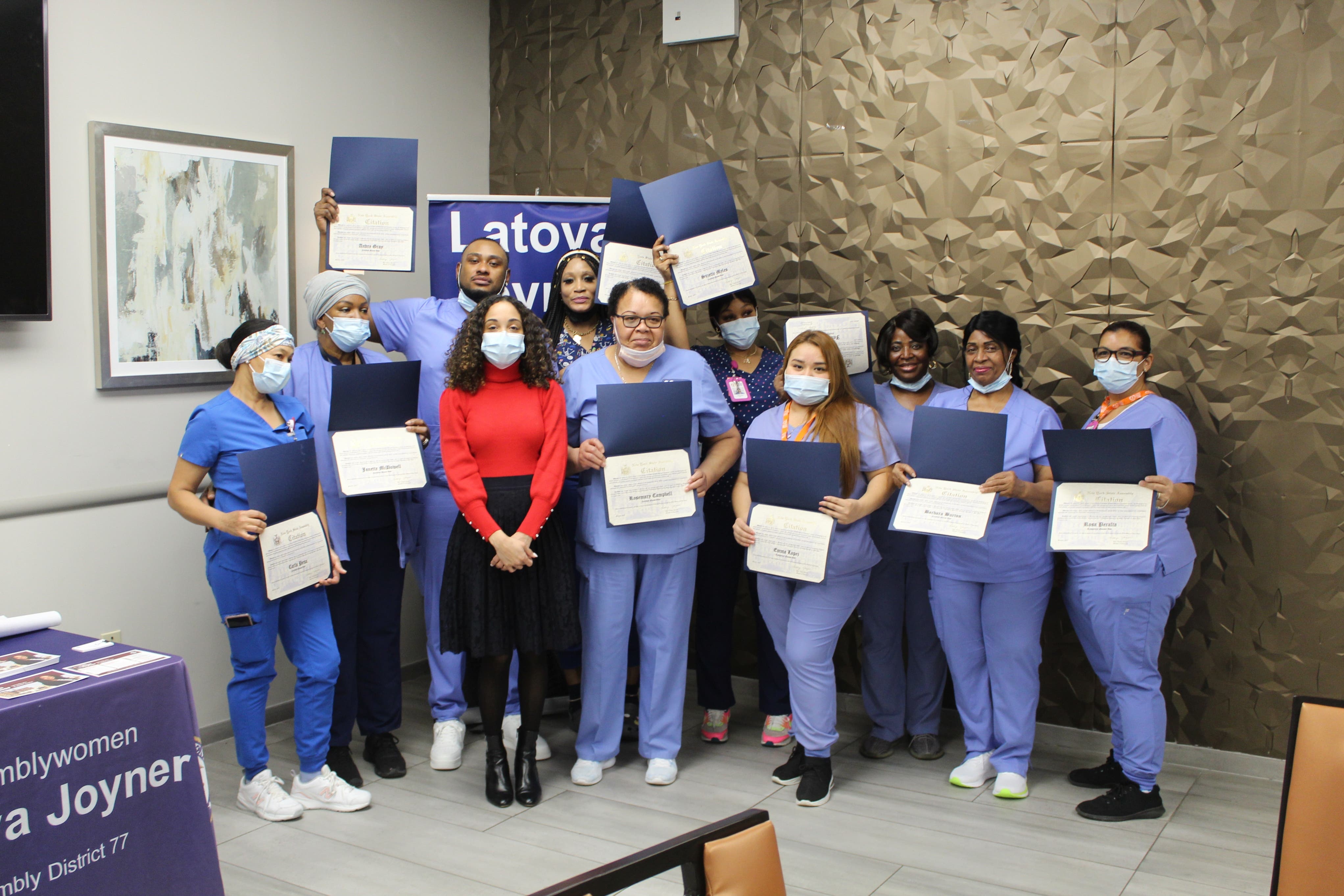 State Assemblymember Latoya Joyner Observes National Caregivers Day By Shaking Hands and Handing Out Certificates to Bronx CNA's