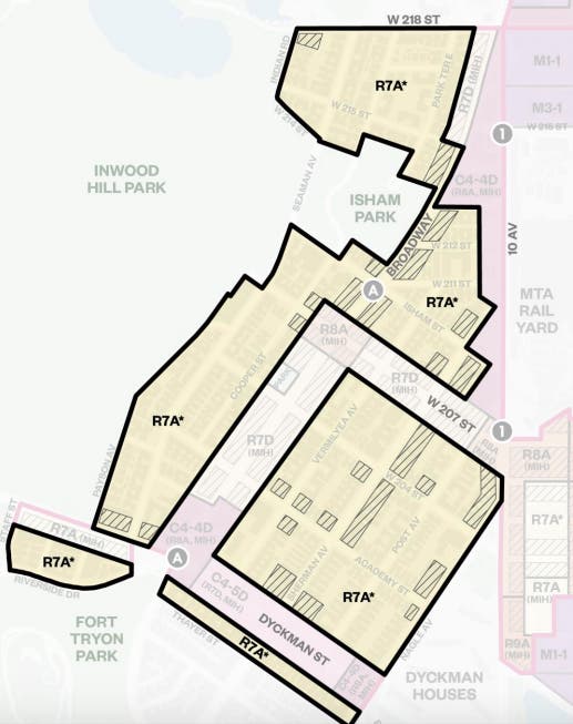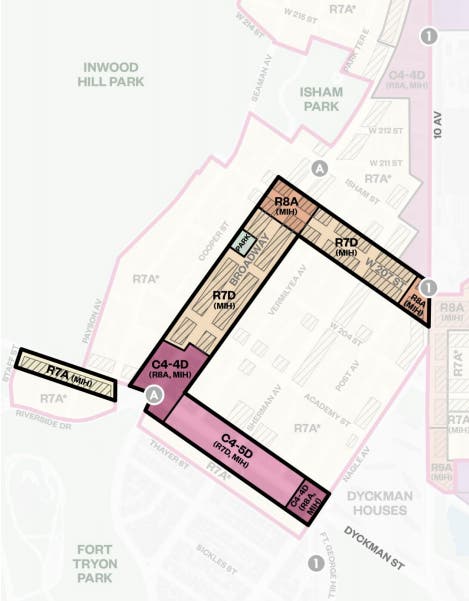 The city is attempting to balance upzonings east of 10th Avenue with contextual rezoning in the western portion of Inwood.