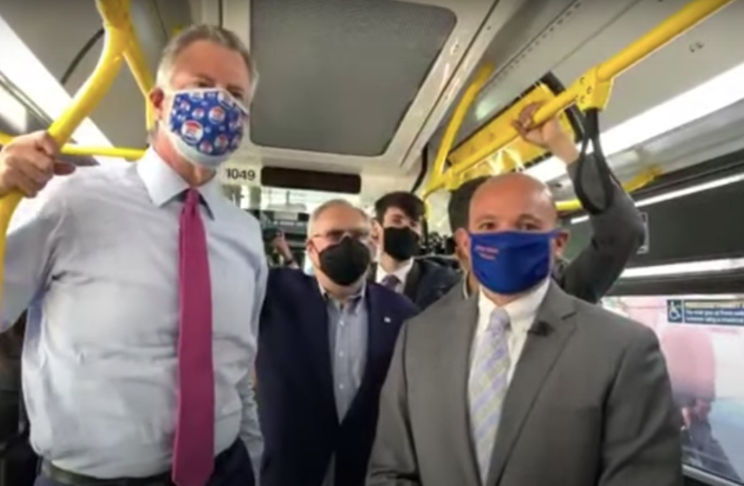 However, he did let reporters know he'd be driving back to city hall after the bus ride. He also mentioned that he could not remember if it was the first time he has ridden a city bus since the start of the pandemic.