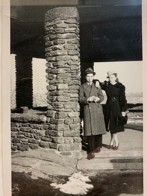 1930s: "My parents, Ann and Bill Panulla, newly married and on a walk in the park, 1937," writes Lois Pan.