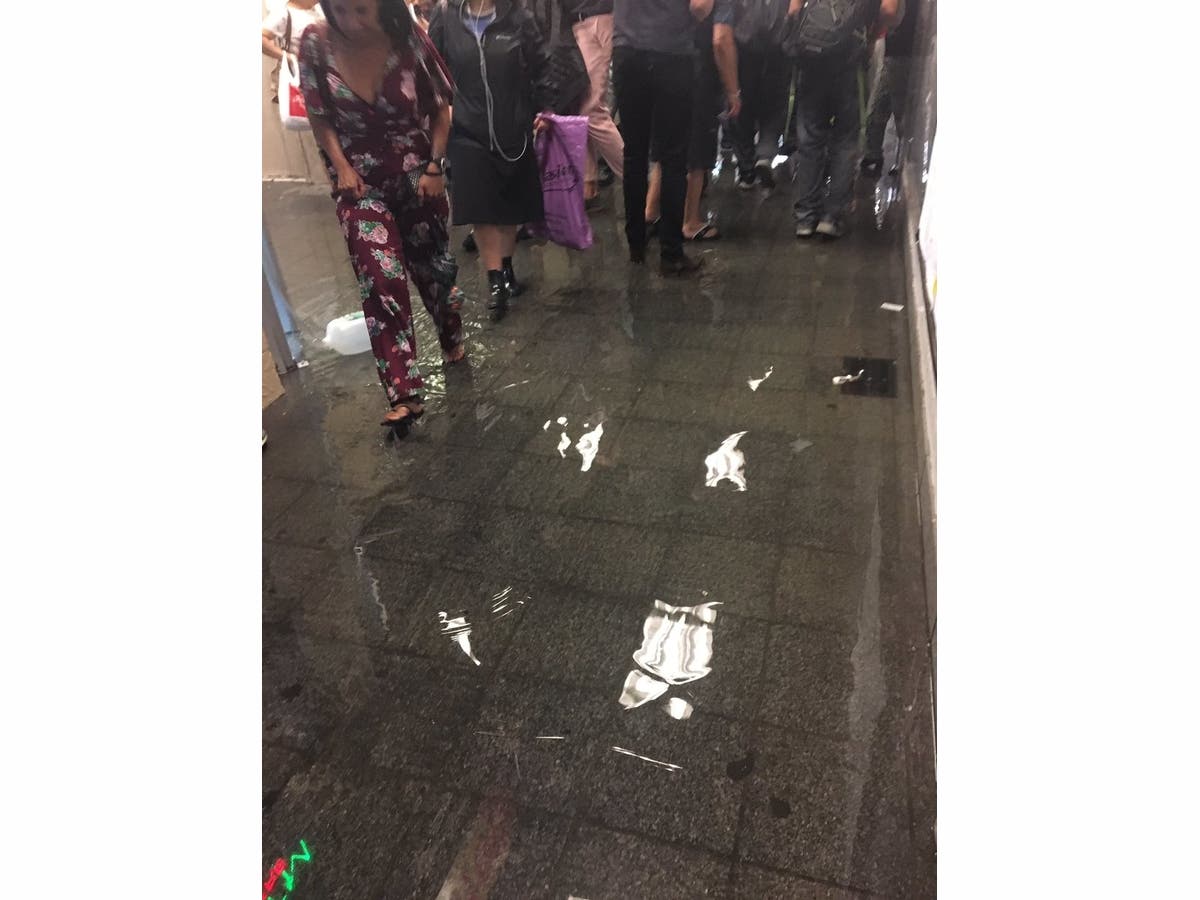 WASHINGTON HEIGHTS, NY — Commuters at Washington Heights' 181st Street subway station had to wade through ankle-high water to get in and out of the station Wednesday night after a rainstorm hit New York City.