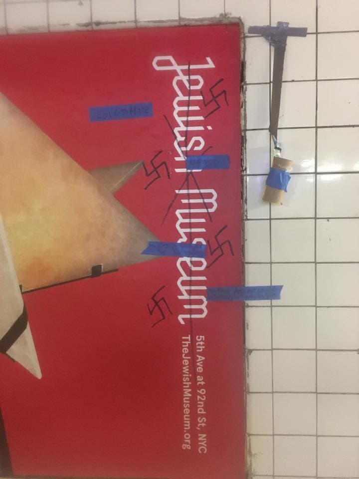 INWOOD, NY — An Inwood resident walking through the Dyckman Street A train station Monday night spotted four swastikas drawn onto an advertisement for an art exhibit at the Jewish Museum.