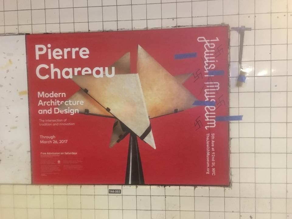 Multiple swastikas were seen drawn on a poster for the Jewish Museum in the Dyckman Street A train station.
