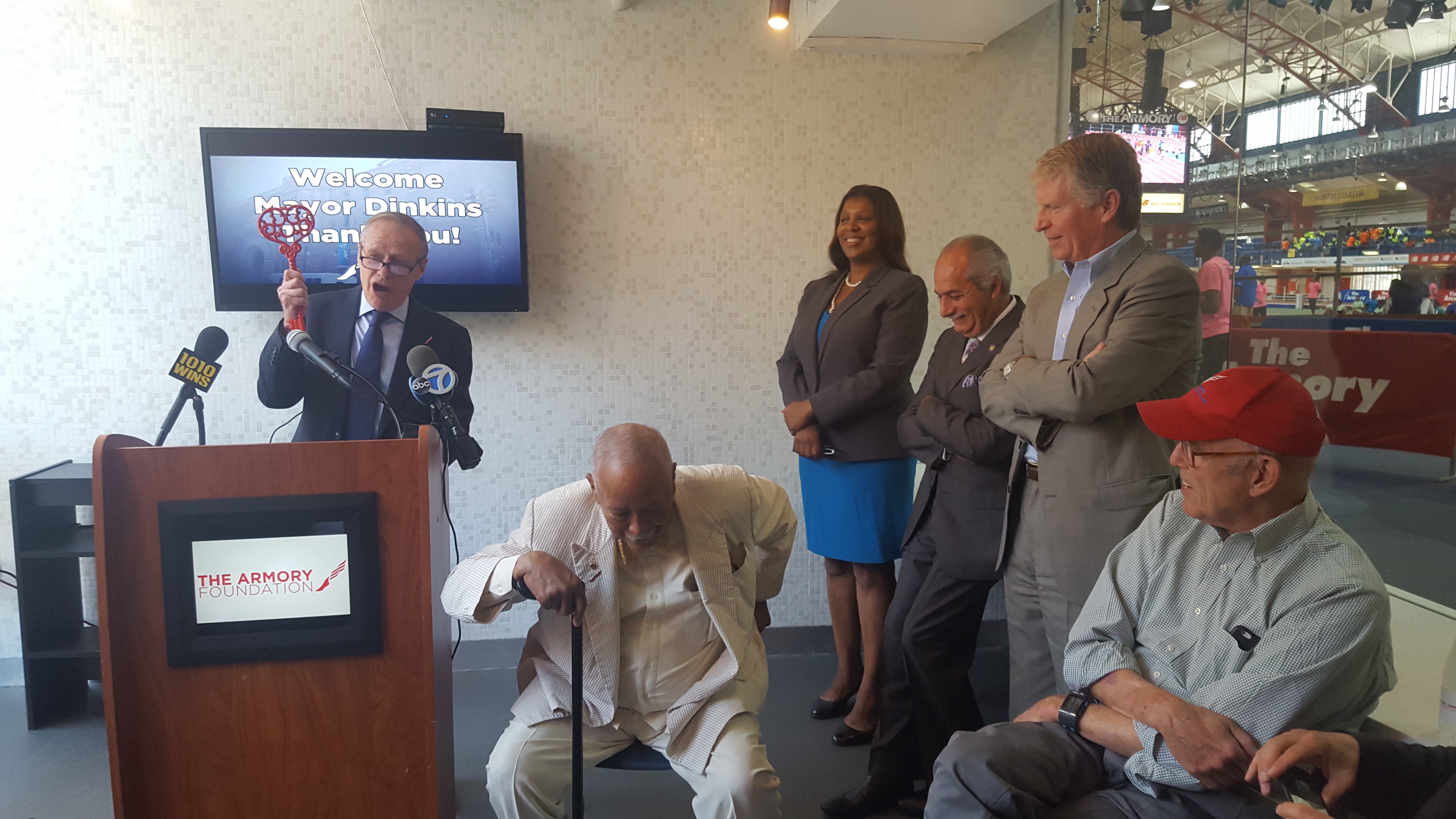 The ceremony hosted by the Armory Foundation and New York Road Runners honored Dinkins for handing over the "key to The Armory" in 1993 when he was mayor. The handing over of the key has led to a transformation of The Armory from an overcrowded homeless shelter to a world-class facility that hosts some of the nation's premiere indoor track events, said Dr. Norbert Sander, president of the Armory Foundation.