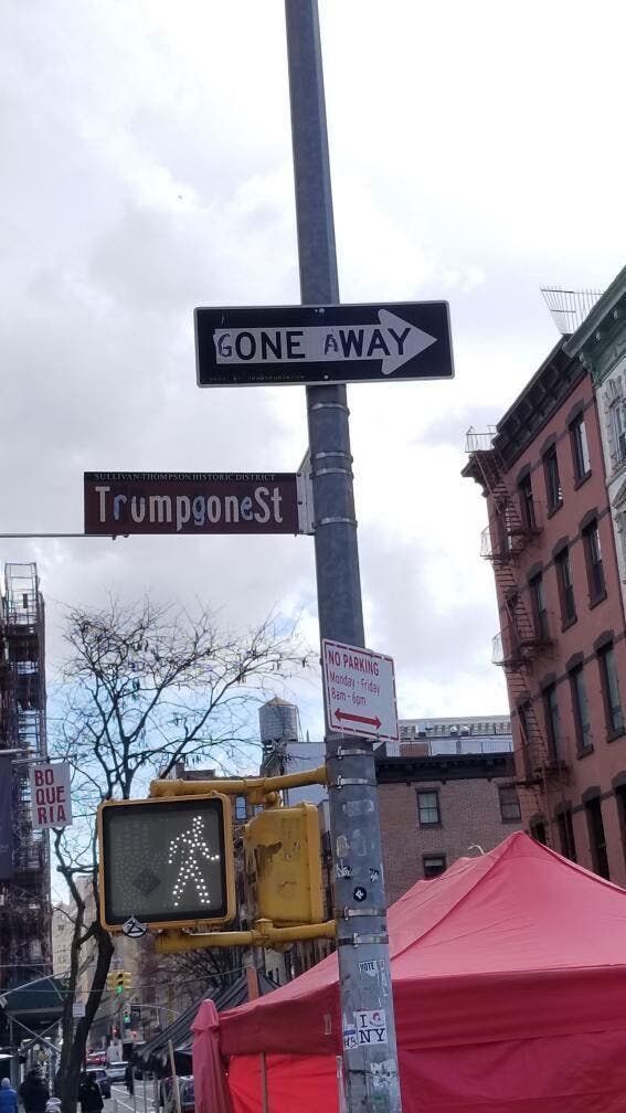 SoHo's Thompson Street Sign Redesigned To Mark End Of Trump Term