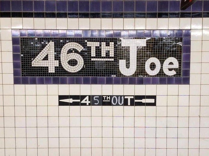 Continuing with the Inauguration Day theme, Wilson also added the name "Joe" to the M and R tiled wall of the Astoria 46th Street Station in Queens. Biden was sworn in Wednesday as the 46th president of the United States.