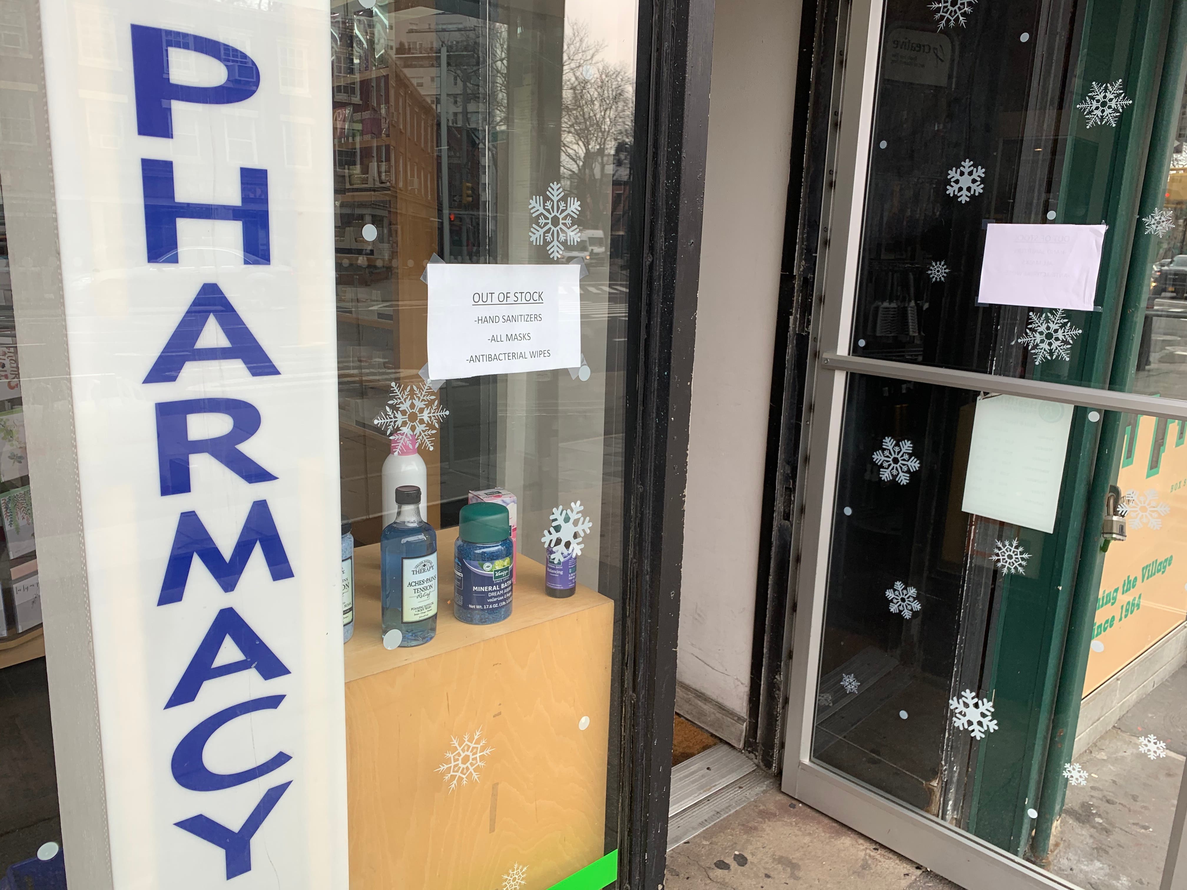 (Anna Quinn/Patch) Ansonia Pharmacy on Sixth Avenue is out of stock of hand sanitizer, masks and antibacterial wipes.