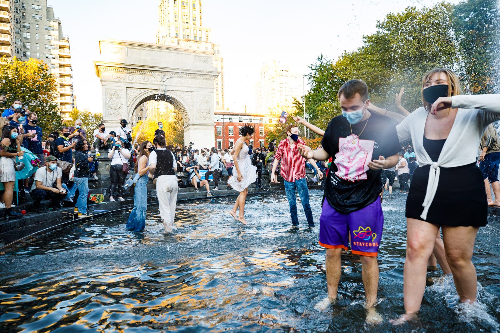 New Yorkers took to Washington Square Park to celebrate President-elect Joe Biden's victory in the 2020 general election.