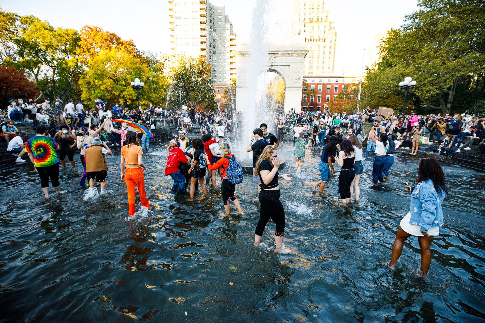While crowds gathered in spots all over Manhattan, there was maybe no larger meeting point for festivities than Washington Square Park.
