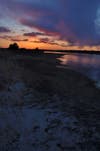 Once inside the gate, the boardwalk stretches across a salt-marsh area rimmed with tall, golden-colored grass, then over a flat, dry terrain that is dotted with scrub pines. It ends at the Shinnecock Canal.