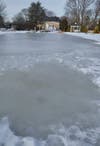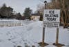 When the weather is cold enough and the pond is frozen, a sign is posted, which reads, "ice skating today." If a few days have been above freezing mark and the pond's ice has gotten softer, a warning will be posted for visitors to stay off of the ice.