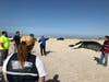 “The humpback whales we see stranding on our shores are typically juveniles,” Durham said. “This is a much larger animal than we typically see. Because of its size, there may be a chance the Center for Coastal Studies may have documentation of this animal. Part of the examination includes taking photos of the fluke, which helps identify the animal. We will be sharing these photos with our partners to see if we can learn more about the animal’s history.”