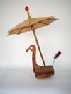 Pearlman said he accomplishes this by transforming old objects into completely different things. For example, one of Pearlman's pieces, made from an old woman's shoe, using wood and other items, was changed to resemble a bird.