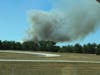 Altogether, eight brush trucks, seven tankers and 14 different fire departments worked together to battle the blaze which destroyed four acres of land along the west side of Old Riverhead Road.