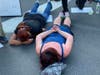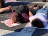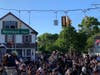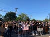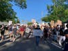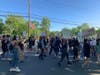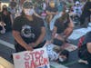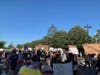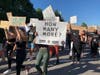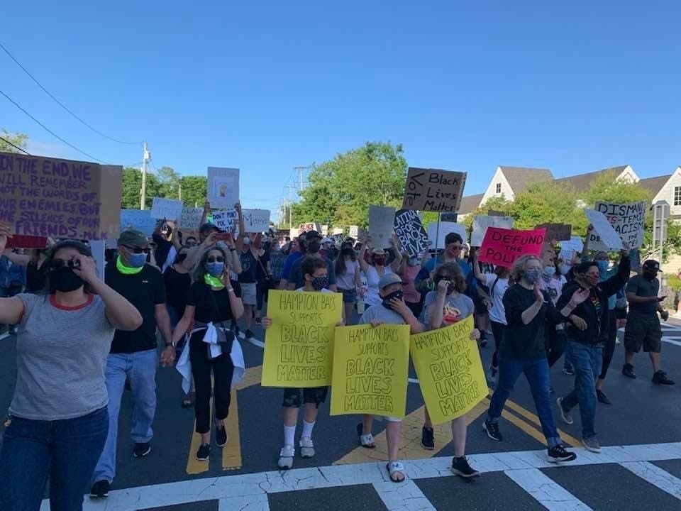 The crowd on Sunday marched from the train station through Hampton Bays and along Montauk Highway, pausing at the intersection of Ponquogue Avenue and Montauk Highway for 8 minutes and 46 seconds — the amount of time that a Minneapolis police officer pressed a knee into his neck as Floyd begged for help, saying "I can't breathe" and calling for his mother.