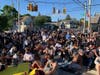 Next, the group headed back to the train station, where speakers addressed the crowd.