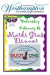 Please join the Greater Westhampton Chamber of Commerce on Wednesday, February 16th at the ALL NEW Buoy One Seafood Restaurant in Westhampton for MARDI GRAS ! Owner Lorraine Pollifrone-Girard, her husband Chef Dave Girard and staff welcome us to enjoy the merriment of Mardi Gras and try all of their fine offerings. $35 per person includes tax and gratuity. Reservations are required by calling Maggie Burbank or Victoria Hedberg-Kingwell at the Greater Westhampton Chamber of Commerce at 631-288-3337 or e-mailing info@whbcc.org before February 15th at 4PM. All Greater Westhampton Chamber of Commerce Networking Dinner Meetings are open to the public.