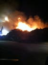 Correction: We previously reported that the fire was said to have been nearly knocked out around 12:45 a.m. and more crews were called in around 5 a.m. This was incorrect, as fire crews worked throughout the night battling the mulch fire. We regret the error.