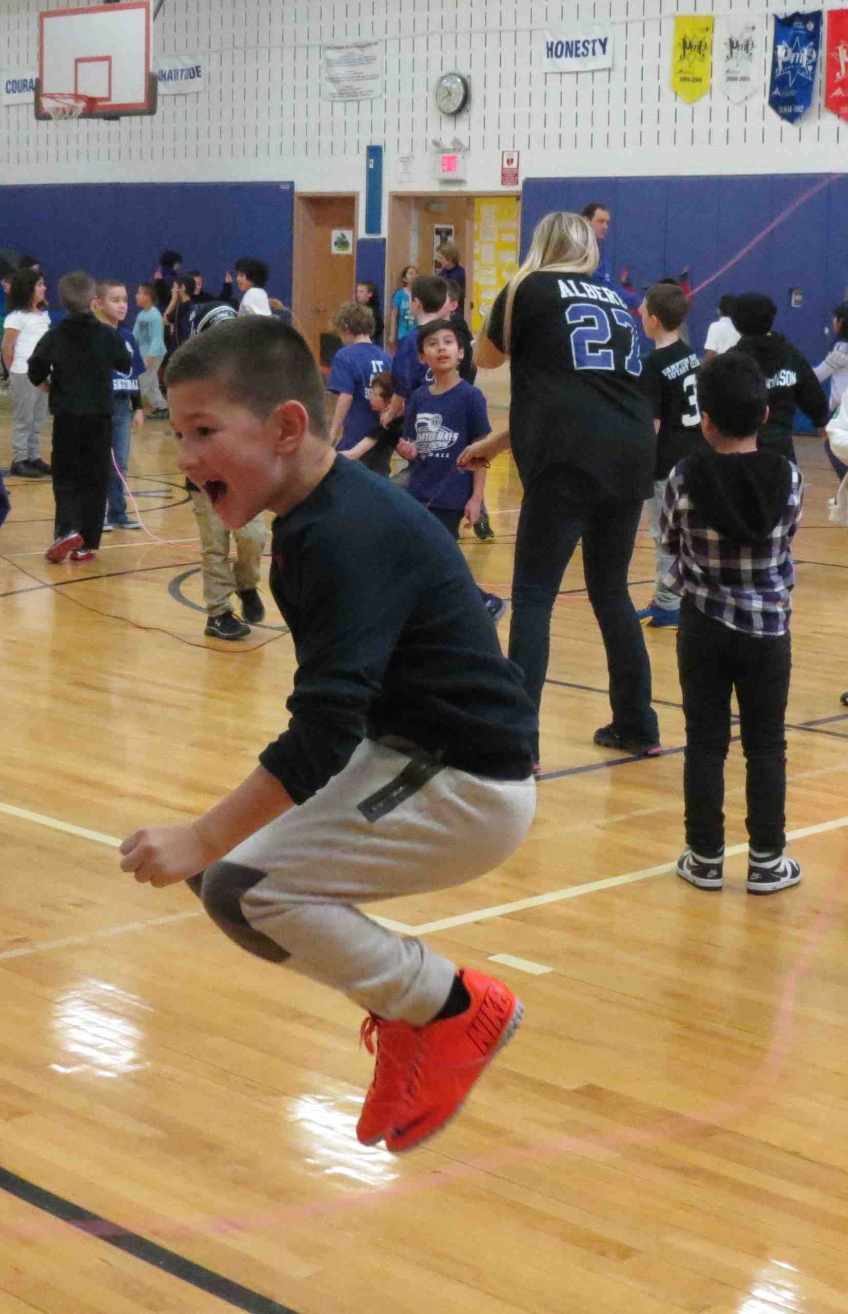Photo Caption: Alex Posada, a third-grader, participates in the 16th annual Jump-a-thon at Hampton Bays Elementary School