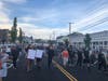 Some local businesses offered bottled water to demonstrators. Police stood by on sidewalks. There were no incidents or arrests.