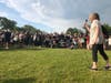 The biggest cheers of day came when Eric Williams of Riverhead told the crowd, "We are being run by a clown — register to vote."