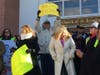 As cars honked, loud cheers went up from the crowd wending its way along Main Street in Hampton Bays.
