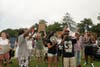 Girls played guitars and sang peaceful songs by John Lennon and others.
