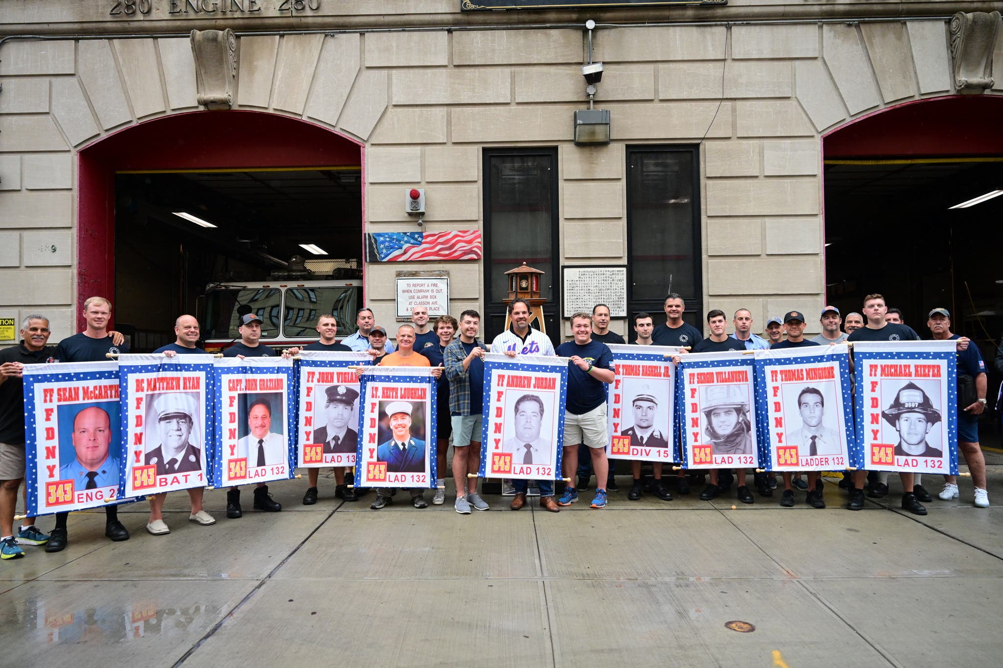 On Friday, Piazza, who has a longstanding annual tradition of visiting a firehouse in memory of the heroes lost on 9/11, visited Andrew Jordan's firehouse in Brooklyn, spending time with firefighters and with Jordan's three sons.