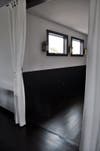 The dining room now features dark wood floors, white wainscoted walls and nautically themed sconces that make it feel like the inside of a lighthouse.