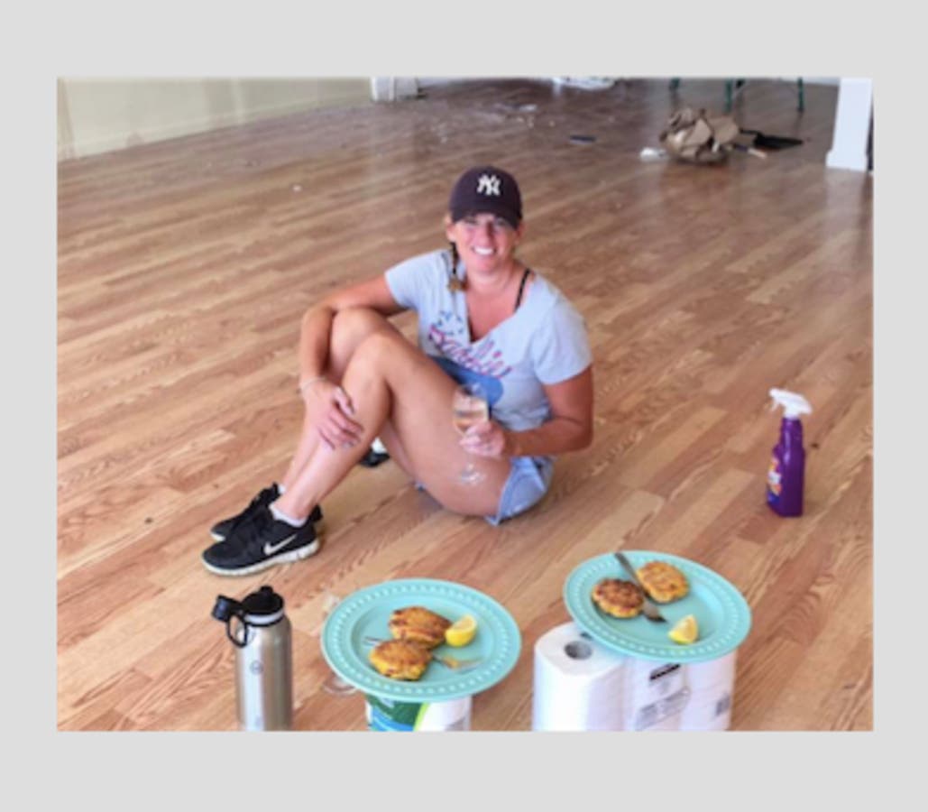 "It was during a memorable moment for me. I had been painting all day and he brought me salmon cakes and wine so we could cheer my first official day I got the key. We literally ate it on the floor using a roll of paper towels as a table," she said, laughing.