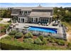 A 3,700 square-foot home in East Quogue is listed for $10.9 million. The beachfront property includes two houses, a main home with seven bedrooms and a 360-degree view of the ocean on the second level, and a guest home. The property sits on 2.9 acres and 200 feet of oceanfront, with expansive decking, a walkway to the beach, spa and heated pool. The home is a traditional style, built in 2005.