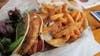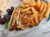 The Dish: Fish Tacos. A generous amount of fresh, hot fried flounder with seasoned breadcrumbs wrapped in a small flour tortilla. But first the tortilla is lined with avocado-corn salsa. Avocados are good on everything, and the cook doesn't skimp. Can't wait until the salsa can be made with local corn. (And guys, maybe next time heat up the tortillas?) The two tacos come with crunchy fries and homemade coleslaw. A little dash of the hot sauce doesn't hurt either.