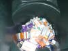 Throughout the day on Wednesday, from 10:00 a.m. to 5:00 p.m., Hertz took people's pills, cancelled out their names in magic marker, for privacy, and threw the plastic bottles into a big trash container provided by Norsic Company. The contents would then be safely incinerated.