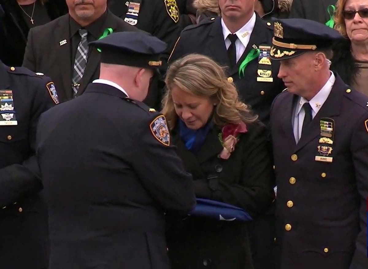 "And I ask every New Yorker, when you see a police officer today, please offer them condolences as you would to someone who has lost a family member because, in fact, they have," de Blasio said. "We think about Brian's life and we should see so many positive, powerful things in his life because he lived right. He wanted to be a police officer from an early age, he realized his dream. He wanted to protect others and he did. He wanted to provide care and comfort. He did it even before he was an officer helping troubled young people here on Long Island and he brought that passion and that belief to the 1-0-2 Precinct and made it a better place."