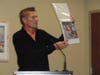 Simon Jorna, owner of the Beach Bakery, rose to the podium to ask village board members to clean-up Main Street before the summer tourist season is in full swing.
