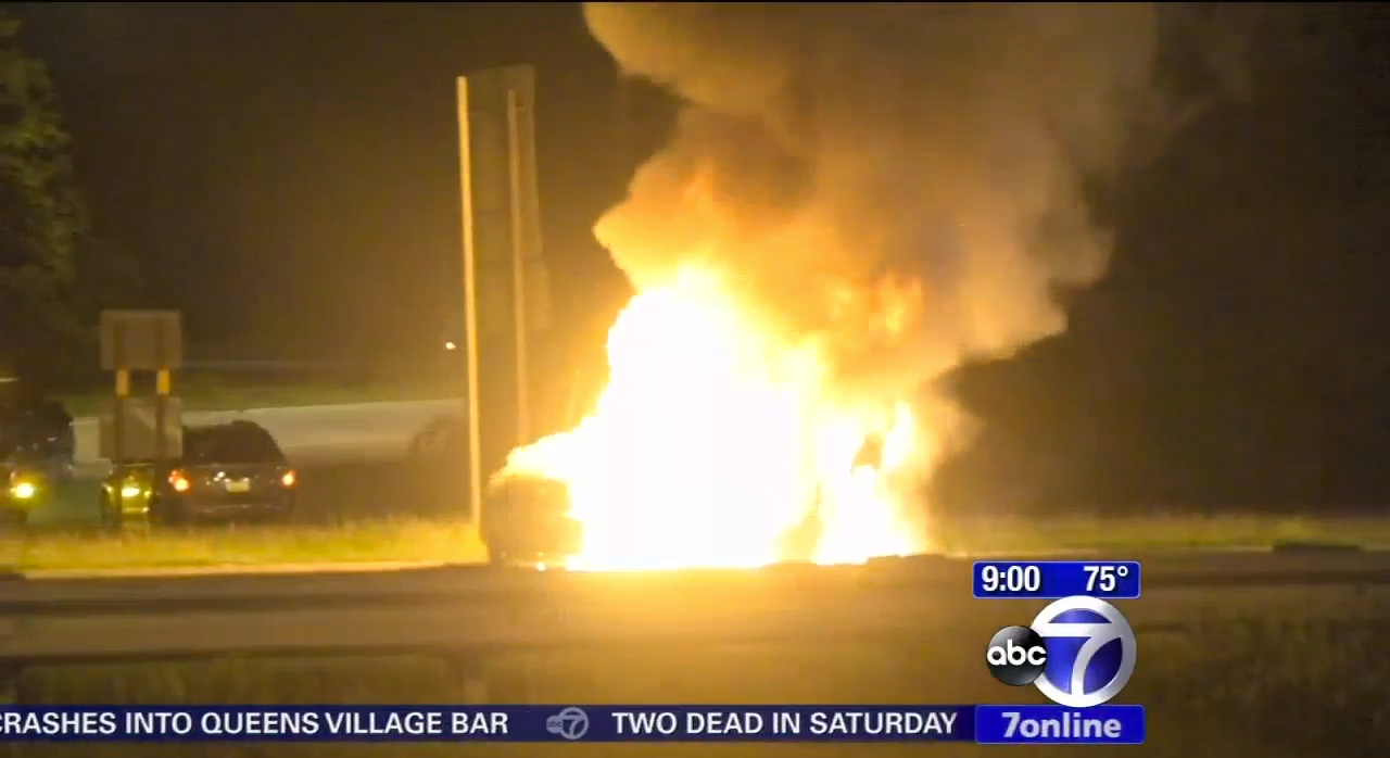 The fiery crash occurred on the Southern State Parkway early Sunday.