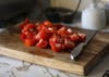 Next, it's time to get your tomatoes ready. I used Roma tomatoes because my boyfriend's mother gave me a ton from her garden. But you can use any type of tomato you want to, just make sure its red. If you don't have fresh tomatoes, that's fine too. I use the canned versions all the time! (You can buy Nature's Promise Organic Tomatoes for about $3 a can. You might want to stop by the Produce Warehouse on Udall Road and check out what they have as well.)