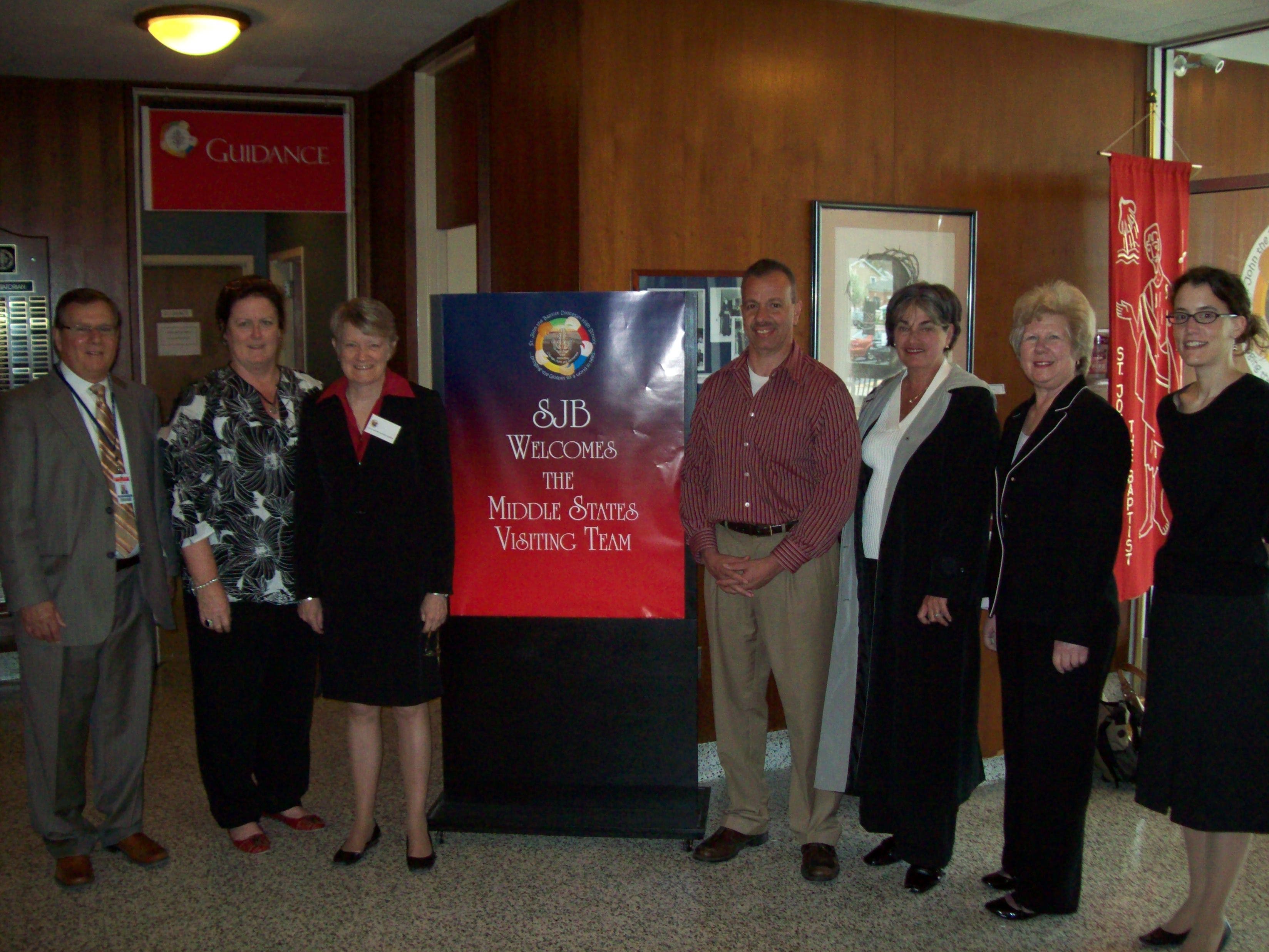 When schools across Long Island were returning from their Spring Break, St. John the Baptist in West Islip was welcoming their Middle States Validation Team for their three-day visit (April 13-16.)Â The team visit, which was a culmination of SJB's two-year Self-Study process, included class observation, meetings with students, faculty, administration and staff members. There was also an examination of the school's "Objectives and Action Plans" that identify the school's focus for the next seven years. The Middle States team consisted of five volunteer educators from the Middle States region and included: