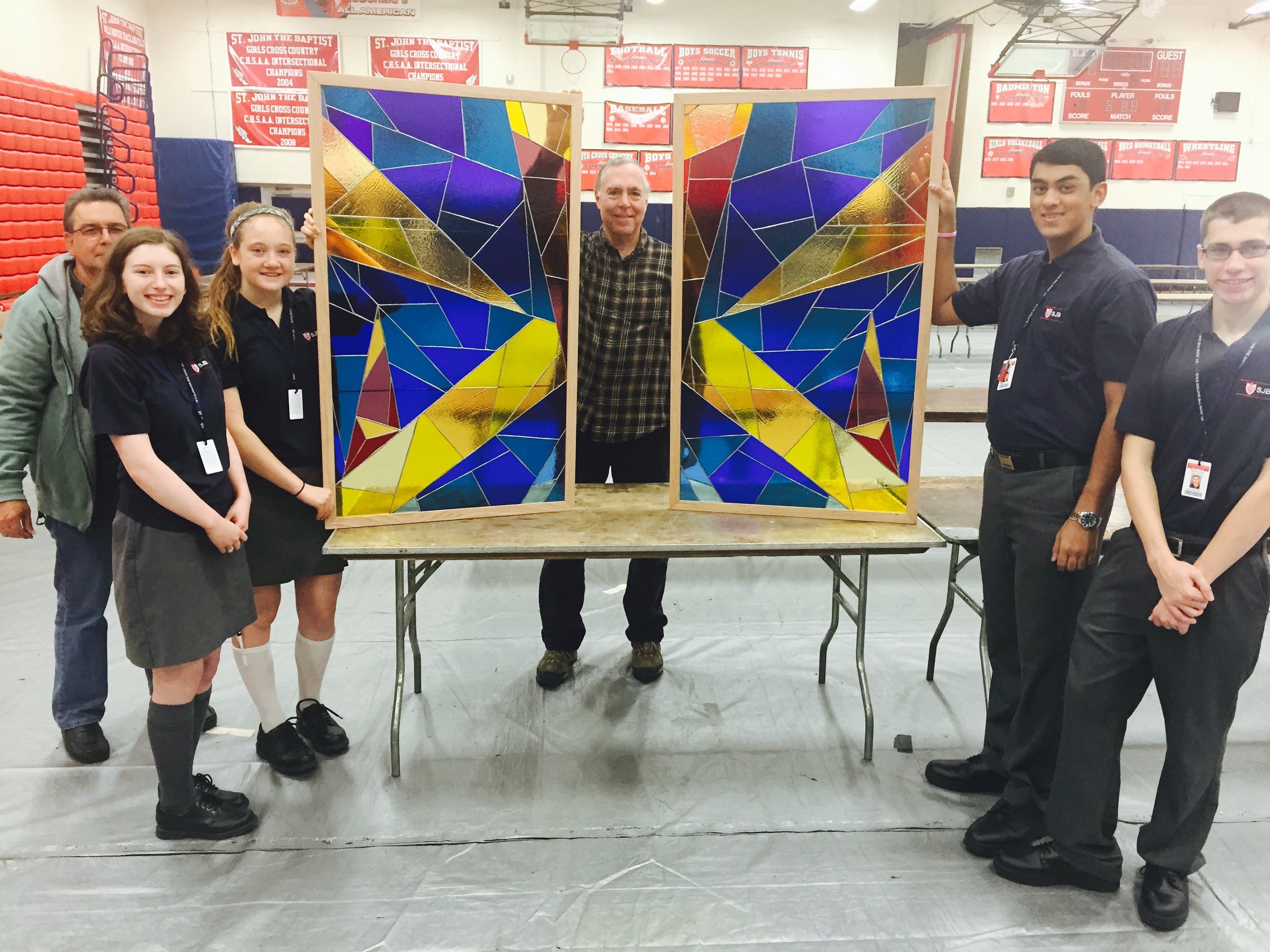 WEST ISLIP, NY - This project idea began in 2012. Mrs. Janet Garvey, a parent of SJB graduate Alanna Garvey ‘13, had the idea and knew her husband, John Garvey, had the skills and resources. He wanted to make it a student-driven project and solicited interested students who wished to learn the stained glass foil method.