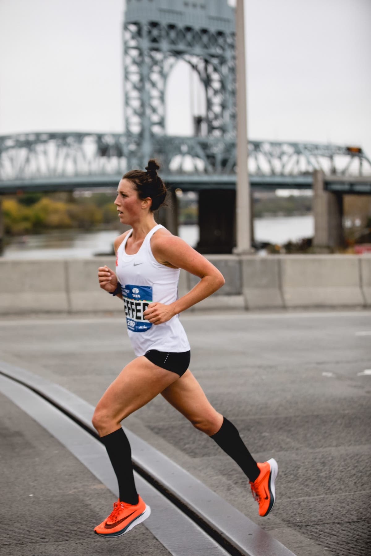 She started training in August, running 95 to 105 miles a week. However, last month she appeared to hit a slight road block when she got tendinitis which forced her to cut back on running the last few weeks before the race.