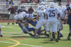 In what can only be called a miraculous comeback the West Islip Lions came back from 22-8 4th Quarter deficit to defeat the Bay Shore Marauders 23-22. The first half was a back and forth game with the Lions taking an early 6-0 lead on a sophomore QB Connor Smith's 2 yard run. Bay Shore tied the game at 6-6 with an interception returned for a TD. The half ended in a tie but the Lions had a number of opportunities to open up a lead but were unable to capitalize. Things looked up starting the 2nd half. After a James McCorvey punt put the Marauders on their one yard line Sophomore Defensive Tackle Andrew Lyons sliced in and tackled the ballcarrier in the end zone for a safety. The lead did not last long as Bay Shore scored on a TD pass. The 4th quarter started with the Lions down and Bay Shore scored twice more on a field goal and another interception run back for a TD. This gave Bay Shore a 22-8 lead and a little over 5 minutes to play. An injury to Connor Smith lead to Freshman Kevin Cunningham taking over at quarterback. With things looking a little bleak Cunningham lead the Lions down the field and scored on a pretty 22 yard run. Kevin DiCapua kicked the extra point and the Bay Shore lead was now 7 points. The Lions attempted an onside kick but Bay Shore recovered with about 2 and half minutes left. A stiff Lions defense forced Bay Shore to punt. Cunningham and Sophomore running back Alex Ponce made several good runs but needed over 50 yards for a score. Cunningham dropped backed and threw down field. A Bay Shore defender made a play on the ball and tipped it into Sophomore receiver Dan Mottes' hands who then cut across the field and completed a 55 yard TD pass and the Marauders lead was now 1 point. The Lions went for a 2 point conversion and James McCorvey ran it in with 31 seconds left in the game. Bay Shore made a strong effort but pass pressure by Lyons, Ponce and Sophmore Ryan Gray proved enough to stop the the threat. A few shout outs, first to Coaches LaGiglia, Rush and Kane for improvement in the team from the first game, also a victory but as ugly as they get. A second shout out to Sophomore Captain Sean Burke coming back from injury playing in his first game was a one man wrecking machine on defense. In addition, the whole West Islip defense played great only giving up 10 points. Finally to Freshman QB Kevin Cunningham and the WI offense that came to life with 5 minutes left in the game. Next Week the Lions play Smithtown East at Smithtown East High School Sat 9/28 at 9 AM.