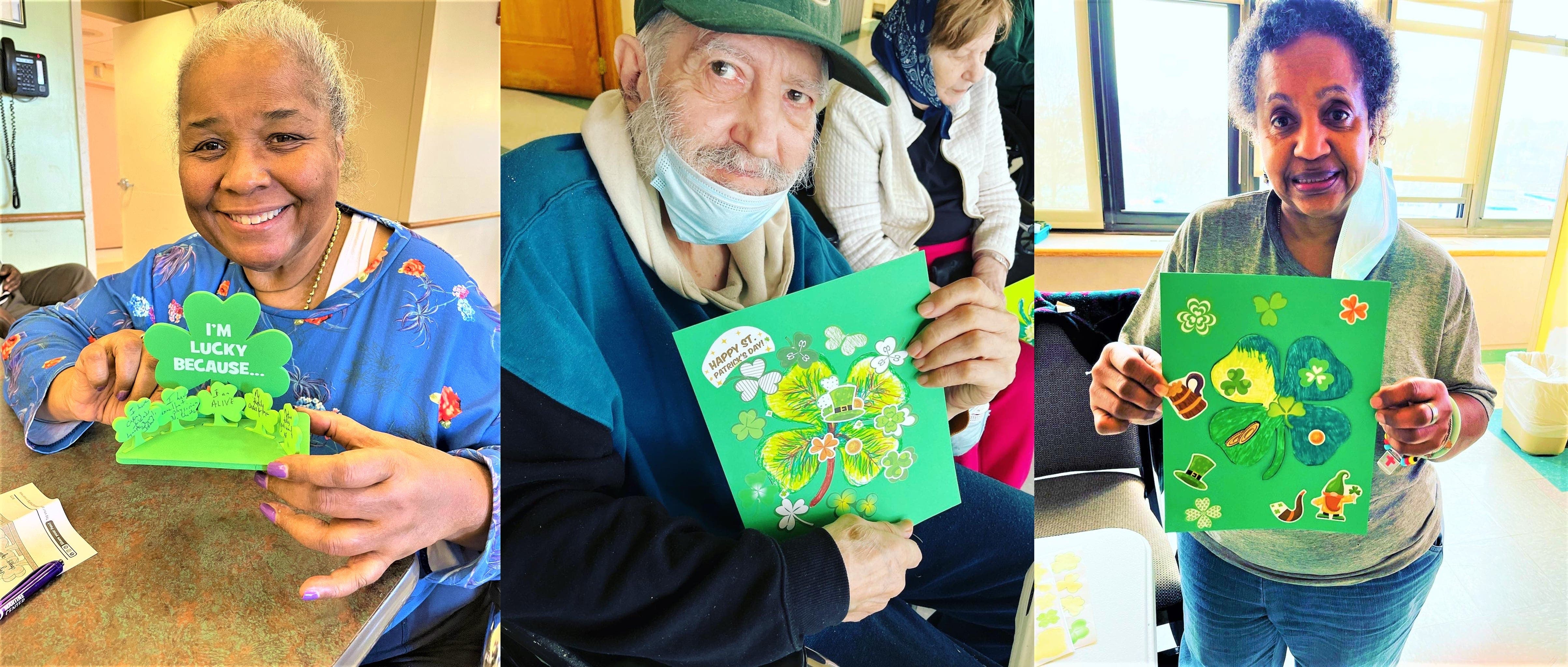 At the 200-bed Martine Center on Tibbitts Avenue in White Plains, the Recreation Department, headed by Director Sandy Joseph, drive so many activities and for St. Patrick's Day, the residents had a blast. With live music and a tasty lunch of corned beef, cabbage, and tasty green ice cream, residents had a wonderful St. Patrick’s Day. So many of these residents took part in a St. Patrick’s Day arts and crafts program where they created their own sayings and drew their own four-leaf clovers. Many of the pieces from the arts and crafts program contained lucky Ireland images such as horseshoes, beer mugs, leprechauns, pots of gold, and even a flag of Ireland. The Recreation team wanted the residents to create their own which individualizes them, something that’s so important as residents of the facility.
